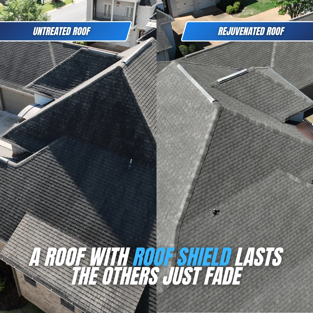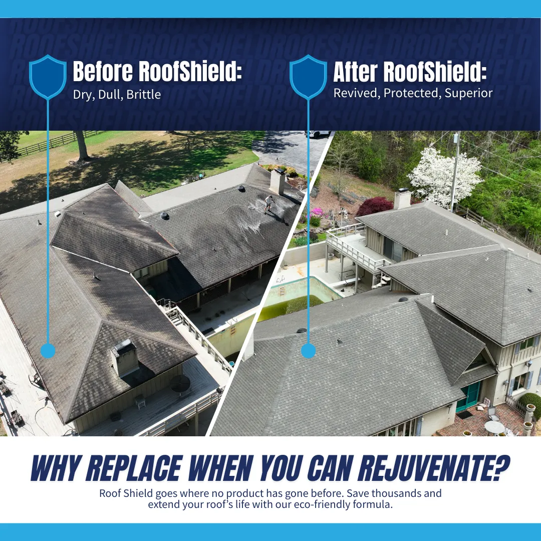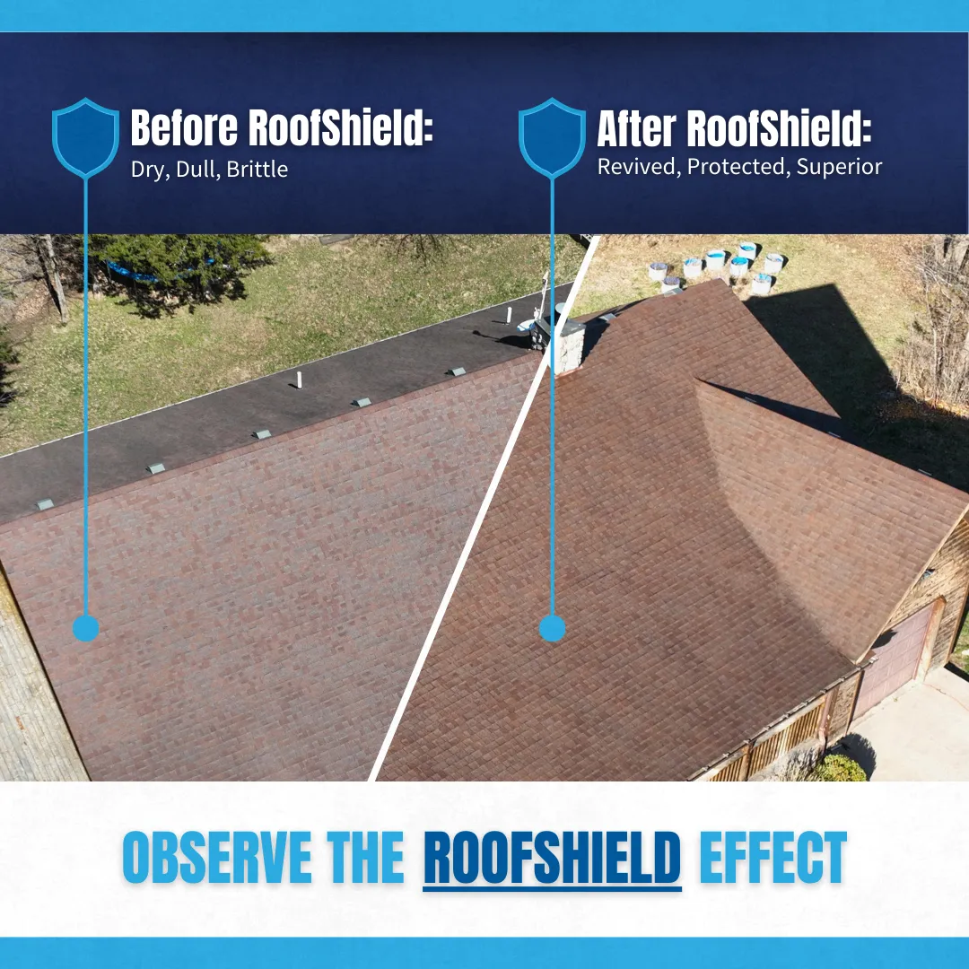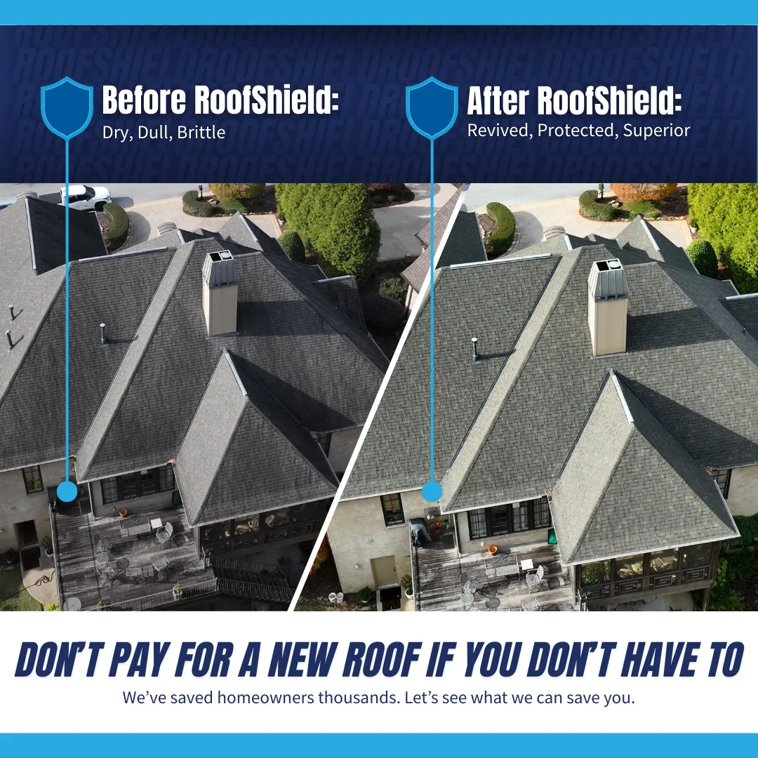 Roof replacement can easily cost $12,000–$35,000+, depending on the size and materials. Roof Shield rejuvenation typically costs a fraction of that—often 70–80% less—while restoring flexibility, water resistance, and curb appeal. It’s like hitting “rewind” on your shingles without the massive price tag.